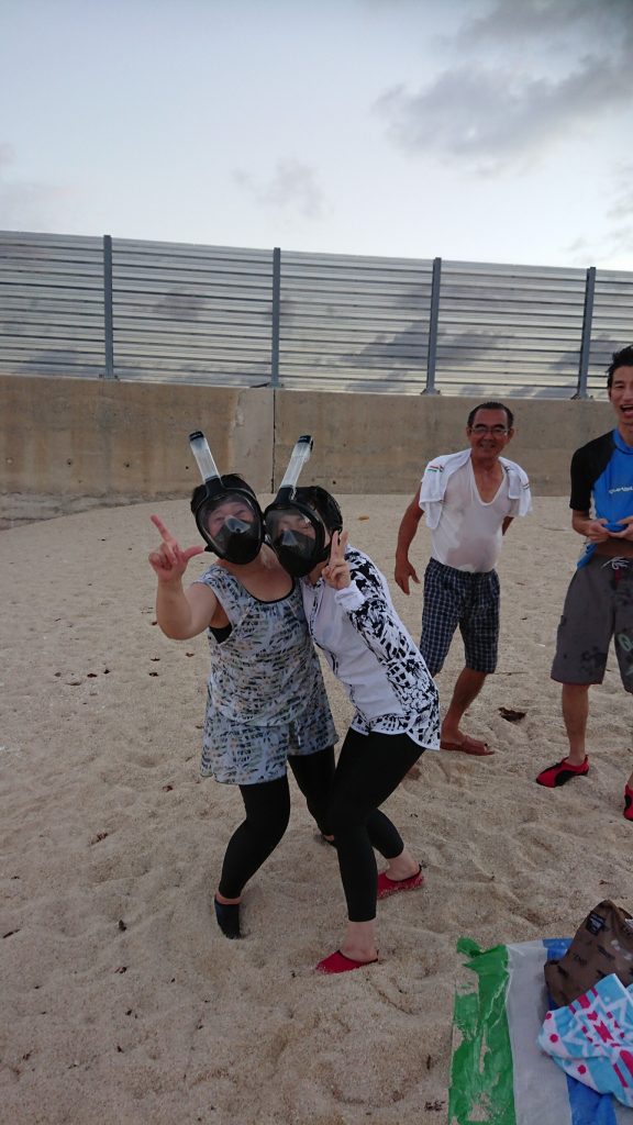 久高島の海で泳ぐ気満々の2人