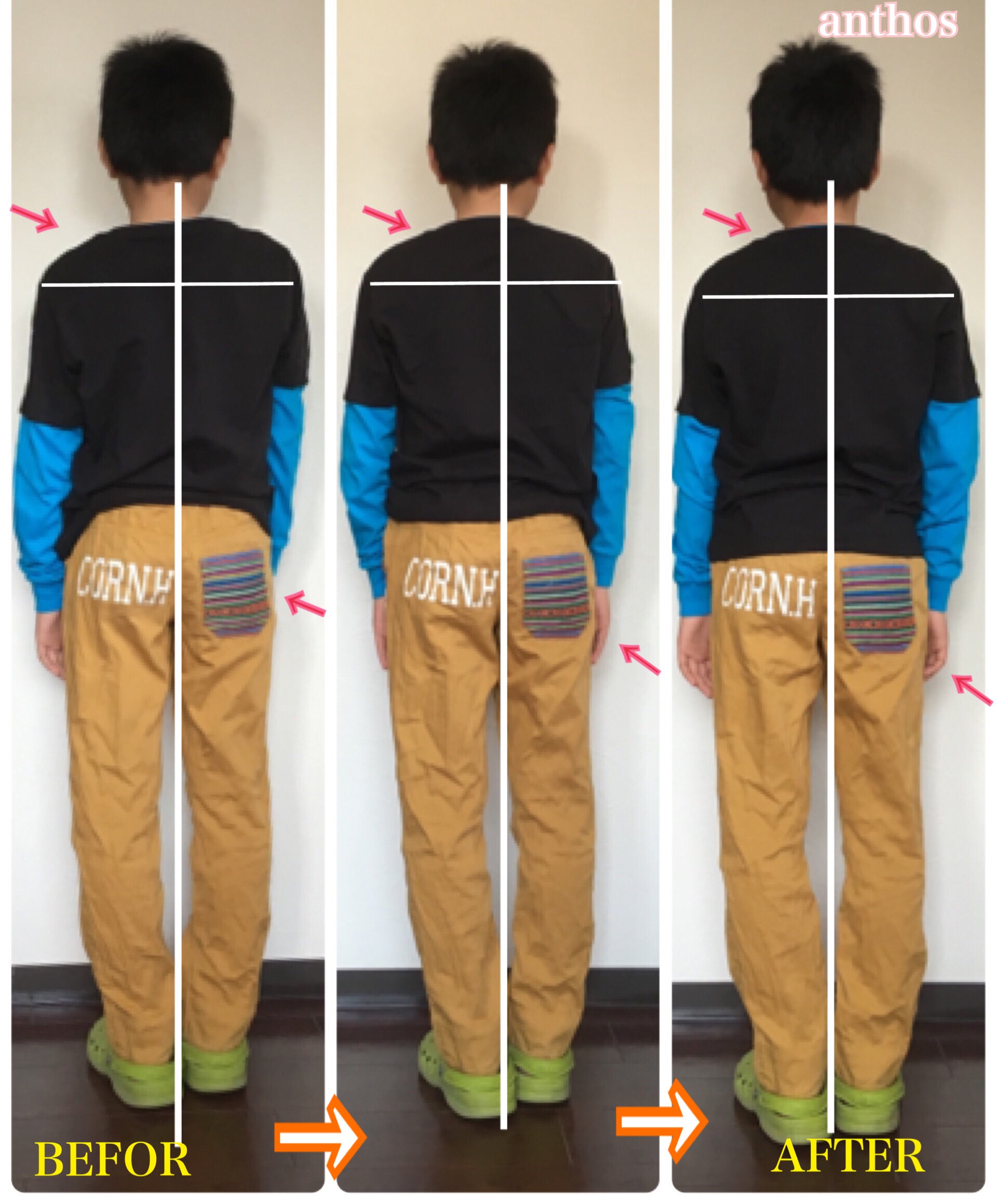 私の姿勢改善の写真を見たお客様達から