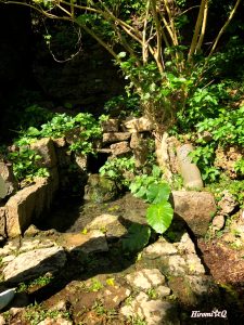 岩がゴロゴロしている所を下るとご神水があり山椒魚がいました。