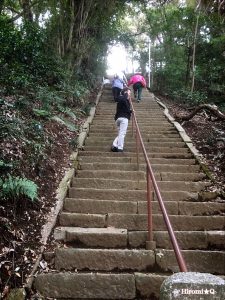 急な石段を300段以上登って神社に参拝した後